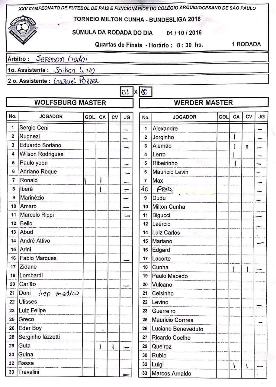 08:30 Wolfsburg Master 1 X 0 Werder Master