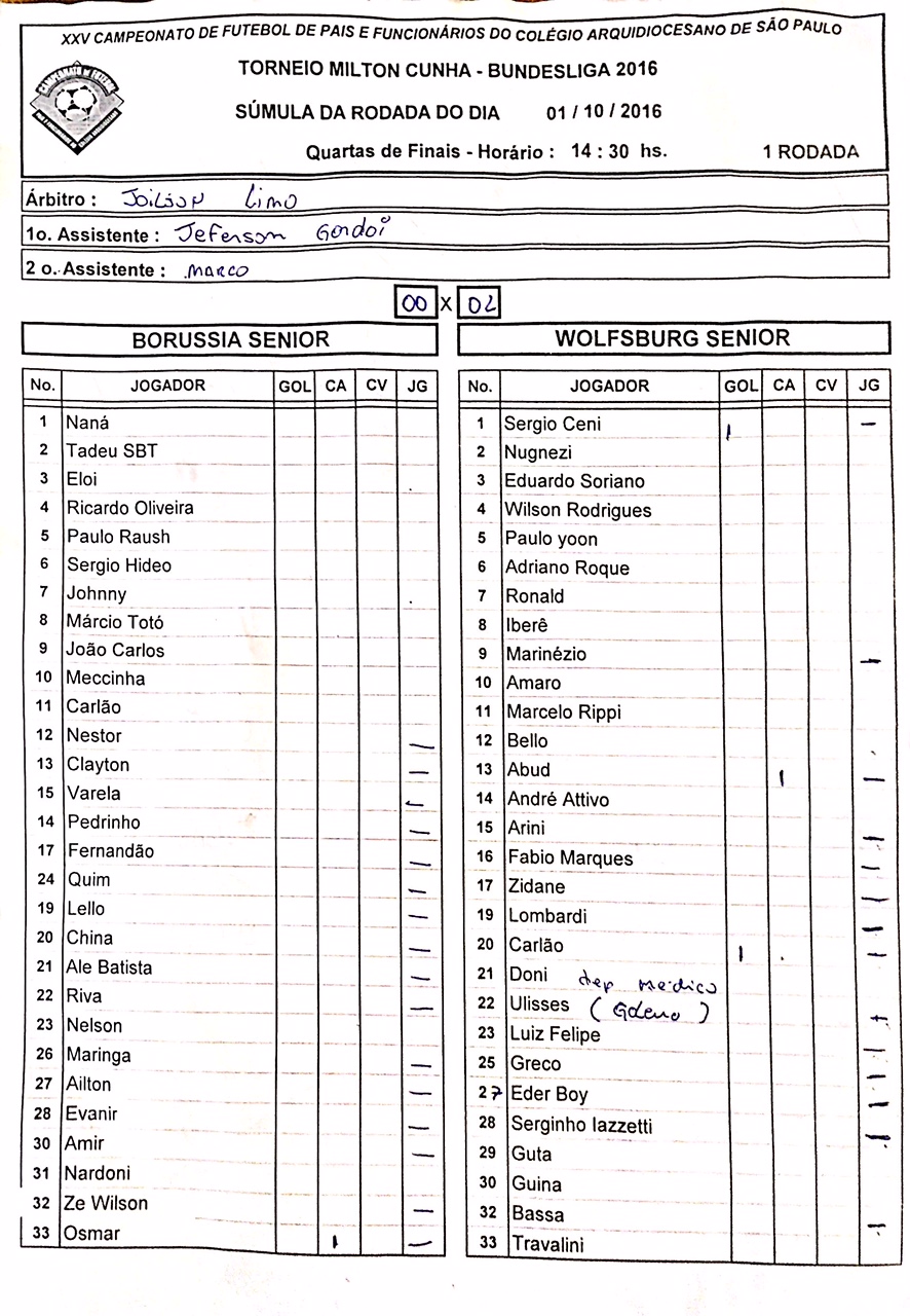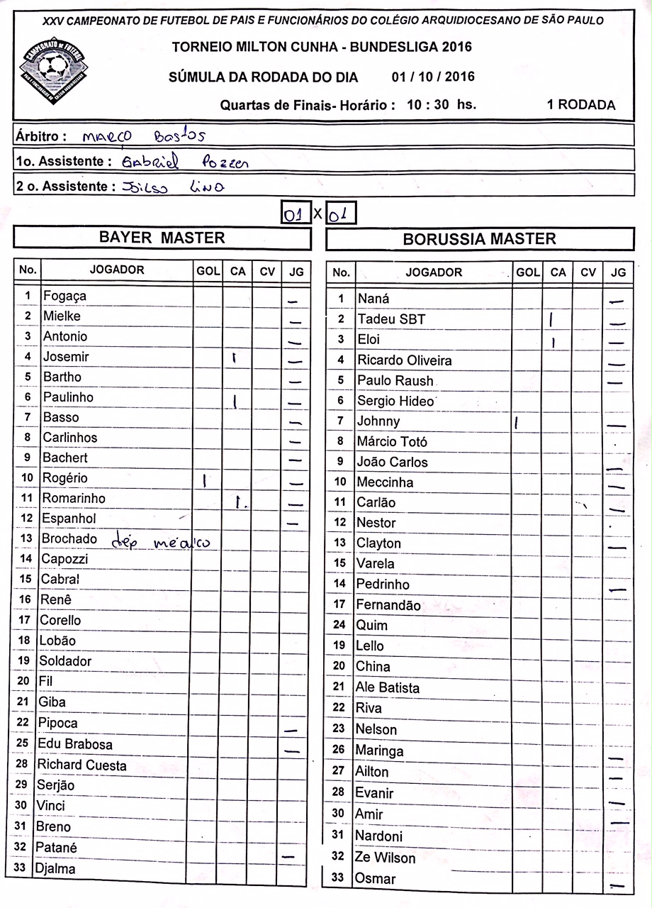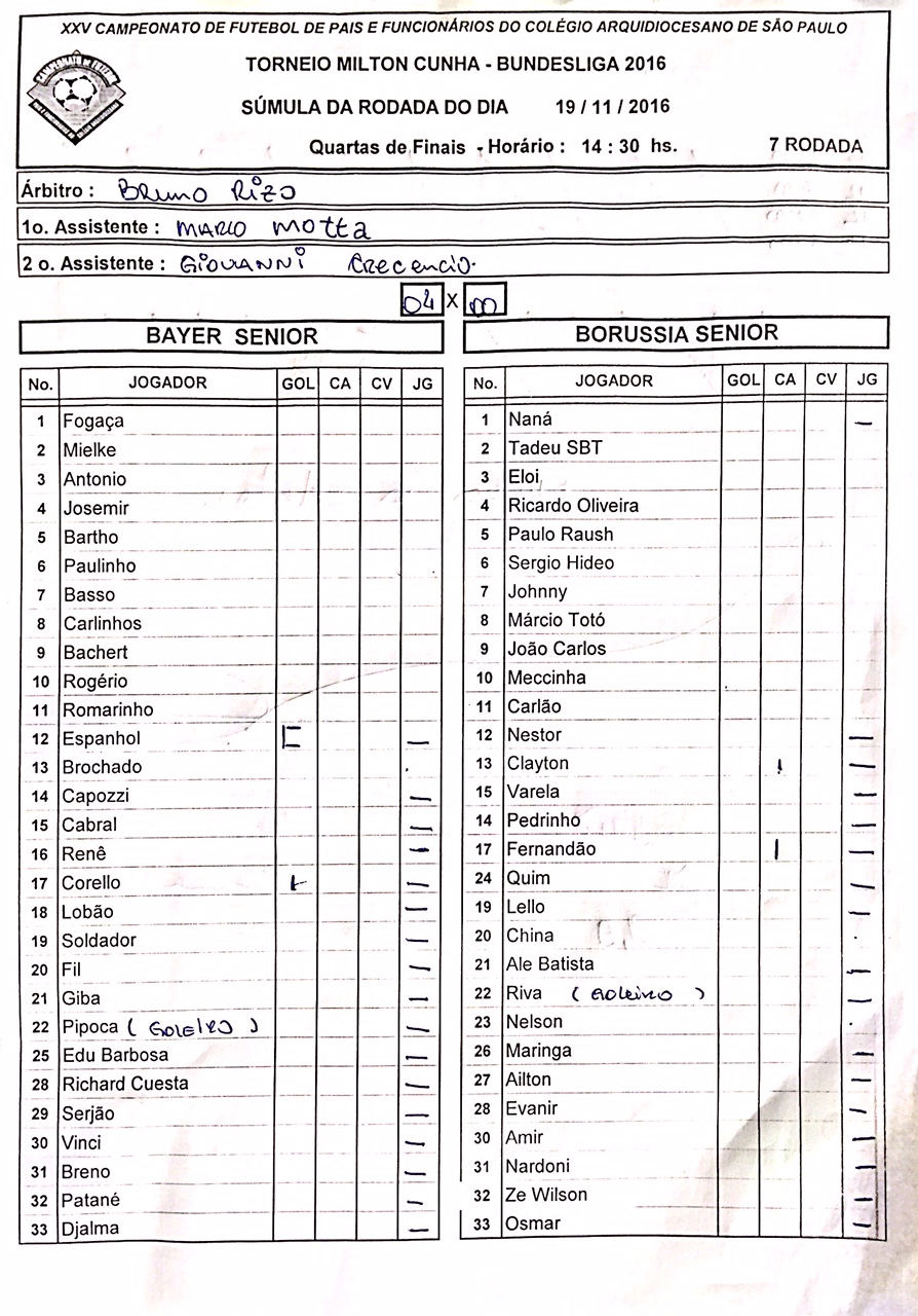 14:30 Bayer Senior 4 X 0 Borussia Senior