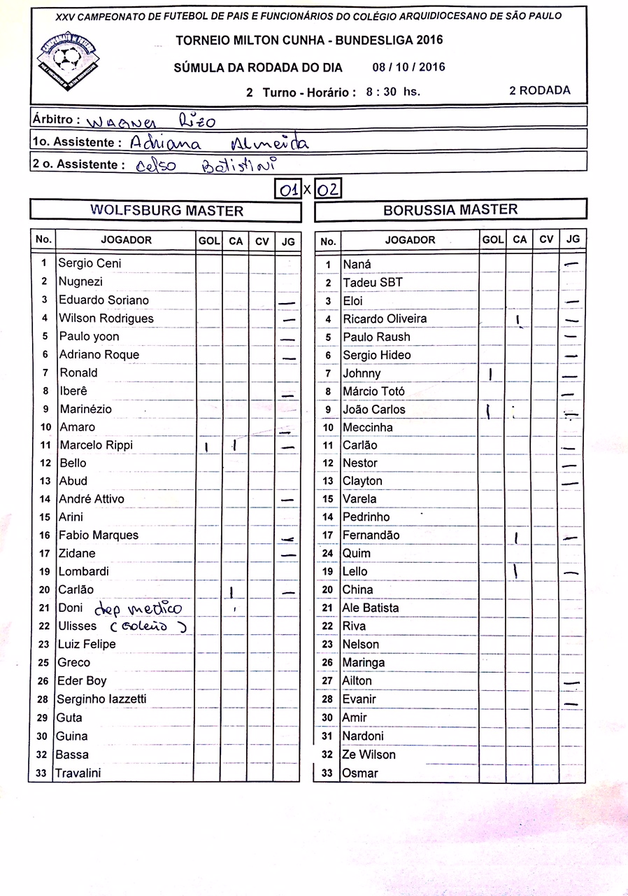 10:30 Wolfsburg Master 2 X 1 Bayer Master