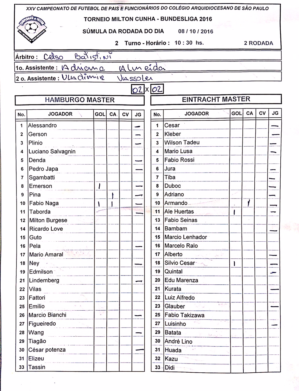 08:30 Eintracht Master 1 X 5 Hamburgo Master