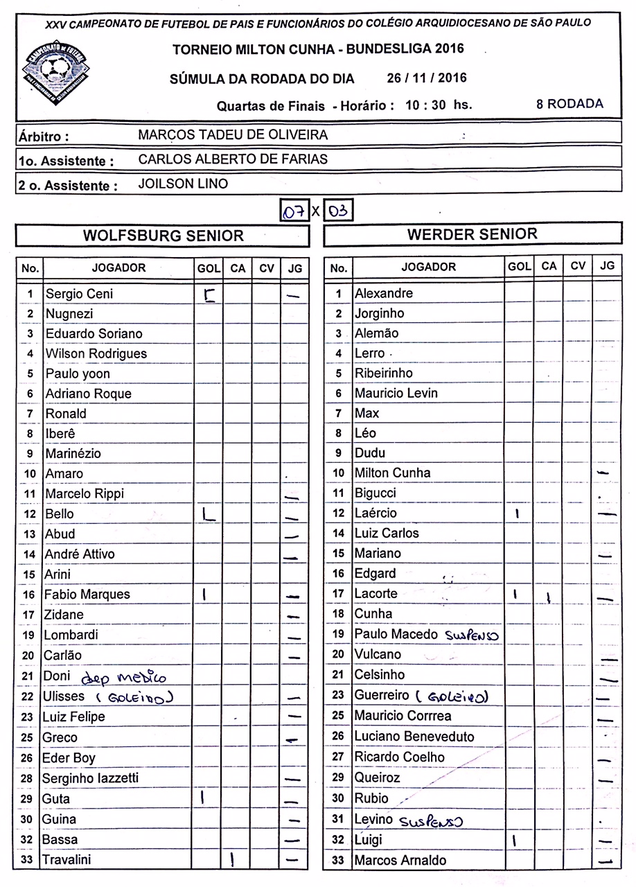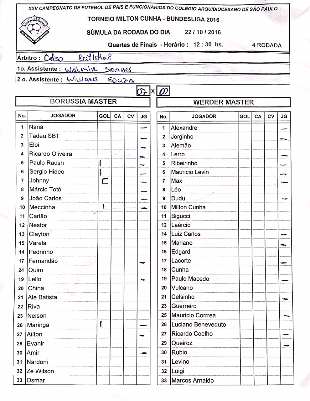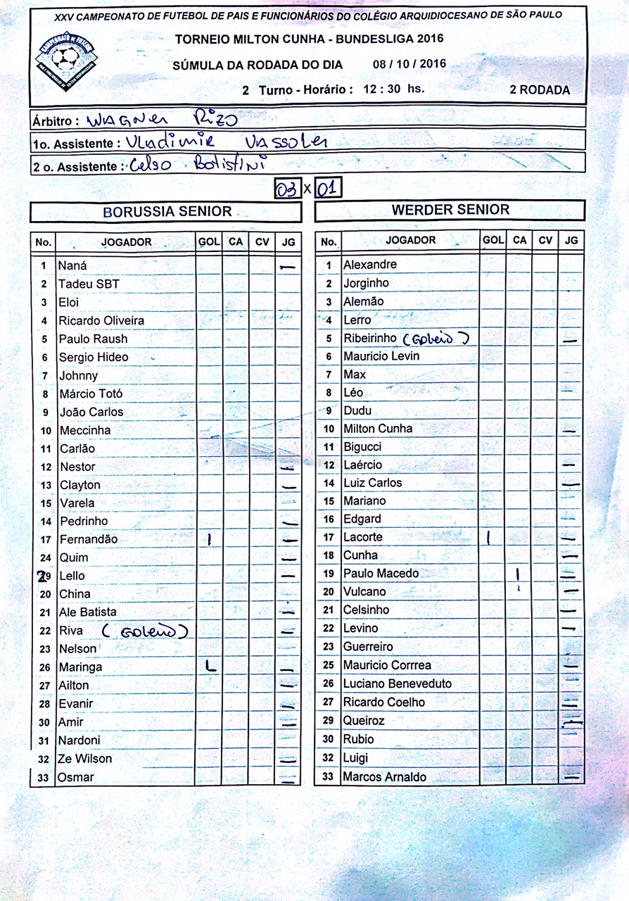 12:30 Borussia Senior 3 X 1 Werder Senior