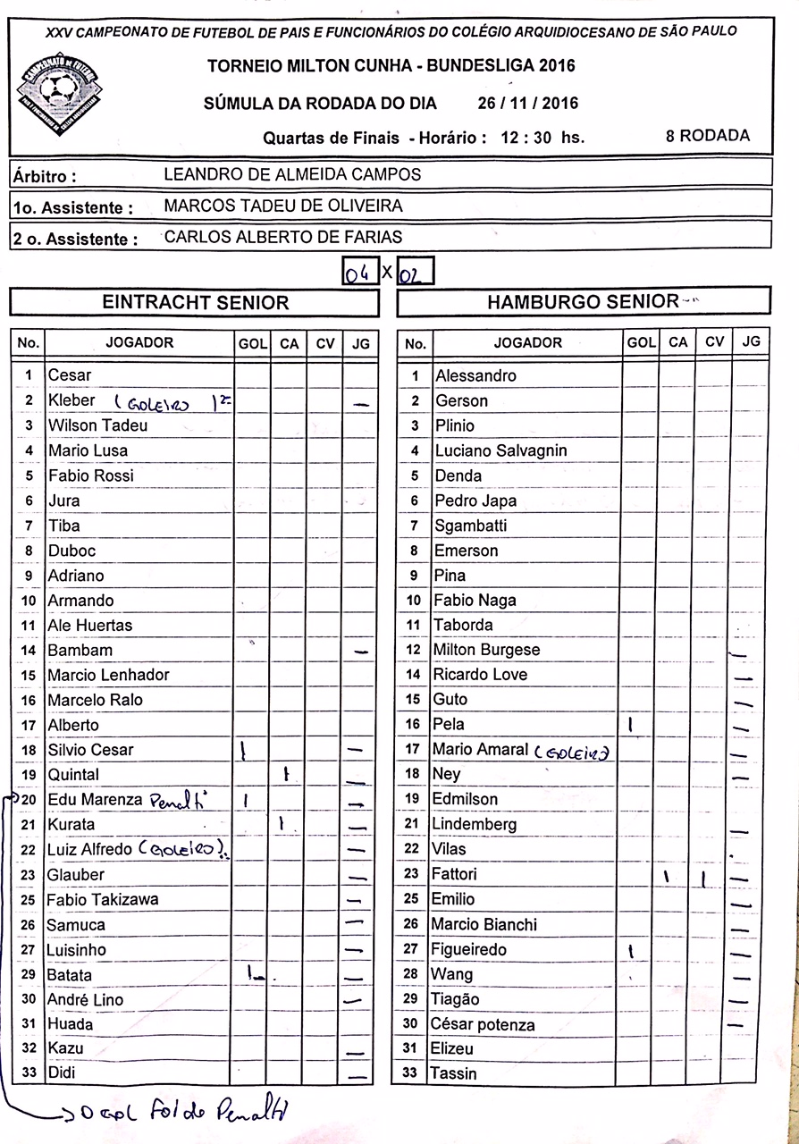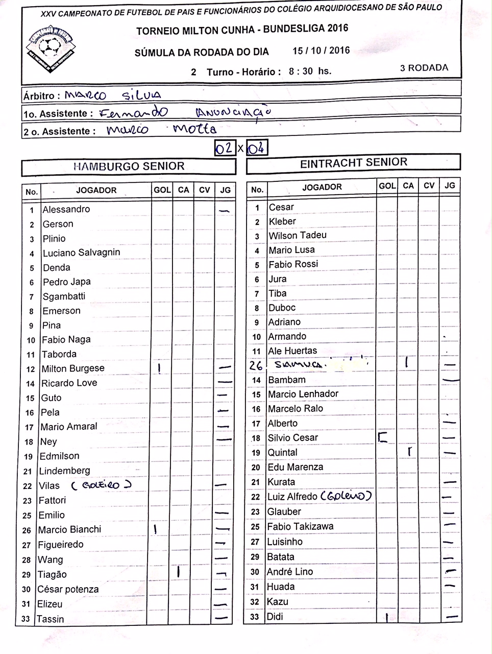 12:30 Eintracht Senior 4 X 2 Hamburgo Senior