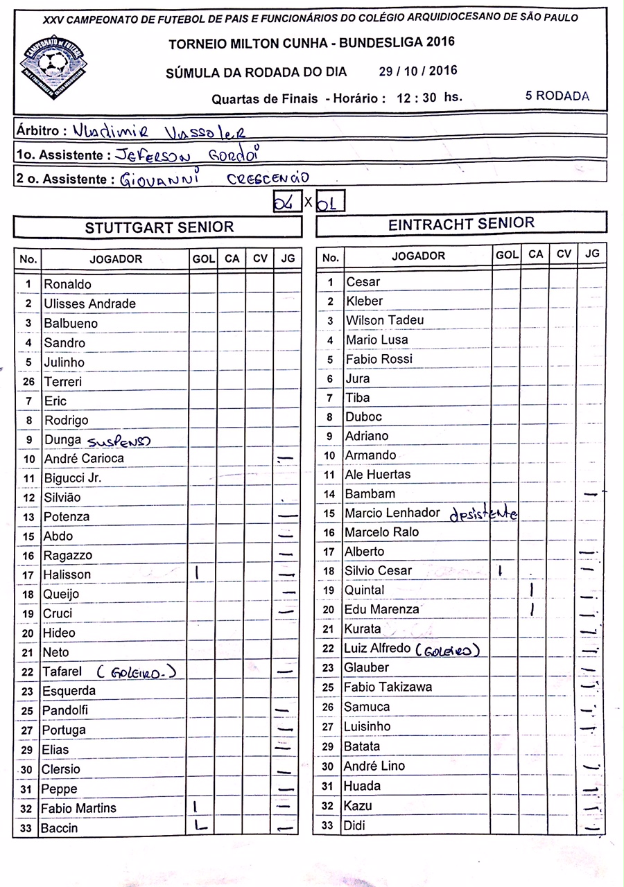 12:30 Stuttgart Senior 2 X 0 Hamburgo Senior