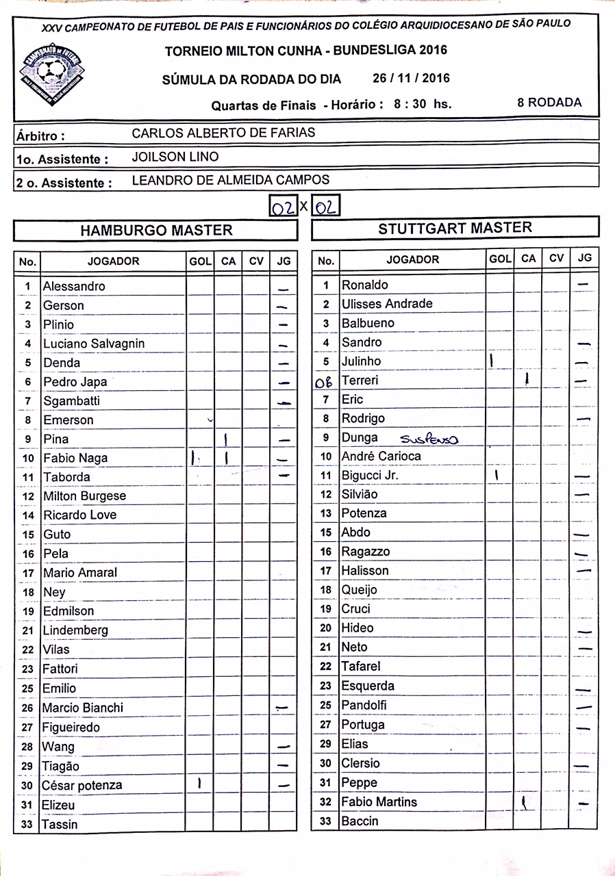 14:30 Stuttgart Senior 2 X 1 Hamburgo Senior